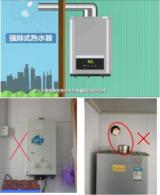 请使用符合国家标准的燃气具。必须使用强排式热水器,烟道必须伸出室外,严禁使用直排式热水器。定期检查家里的燃气软管、接头等部位,可用肥皂或洗洁精泡沫水检查是否漏气,如果发现老化、破损,请务必及时联系具有资质的人员更换,切勿抱有侥幸心理。